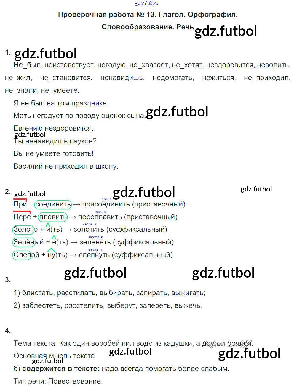 Готовые домашние задания по Русскому языку за 5 класс Львов Тетрадь для оценки качества знаний 2014 ФГОС - Проверочные работы 13
