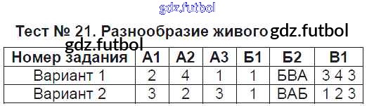 Тест №21. Разнообразие живого
