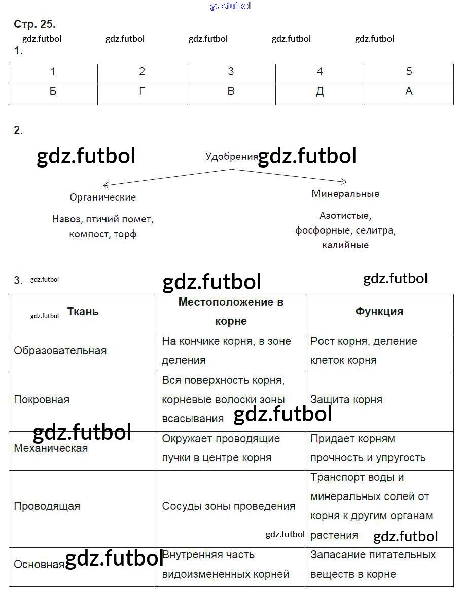 Готовые решения задач (ГДЗ) по Биологии шестой класс Исаева, Романова Рабочая тетрадь Инновационная школа 2017 ФГОС - Страницы 25 доступны для различных учебных материалов. У нас вы сможете найти авторские решения для всех пособий, предназначенных для школьников. Не секрет, что в настоящее время многие школьники прибегают к использованию готовых решебников, ведь они содержат подробные ответы для каждого упражнения, представленного в учебнике.