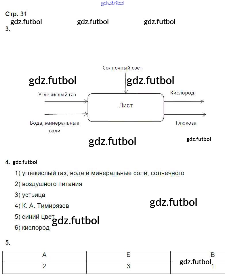 Готовые решения задач (ГДЗ) по Биологии шестой класс Исаева, Романова Рабочая тетрадь Инновационная школа 2017 ФГОС - Страницы 31 доступны для различных учебных материалов. У нас вы сможете найти авторские решения для всех пособий, предназначенных для школьников. Не секрет, что в настоящее время многие школьники прибегают к использованию готовых решебников, ведь они содержат подробные ответы для каждого упражнения, представленного в учебнике.