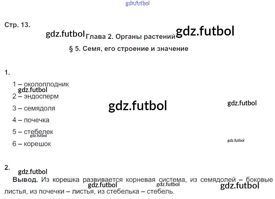 Готовые домашние задания по Биологии за 6 класс Пономарева Рабочая тетрадь Алгоритм успеха 2020 ФГОС - Часть 1. Страницы 13