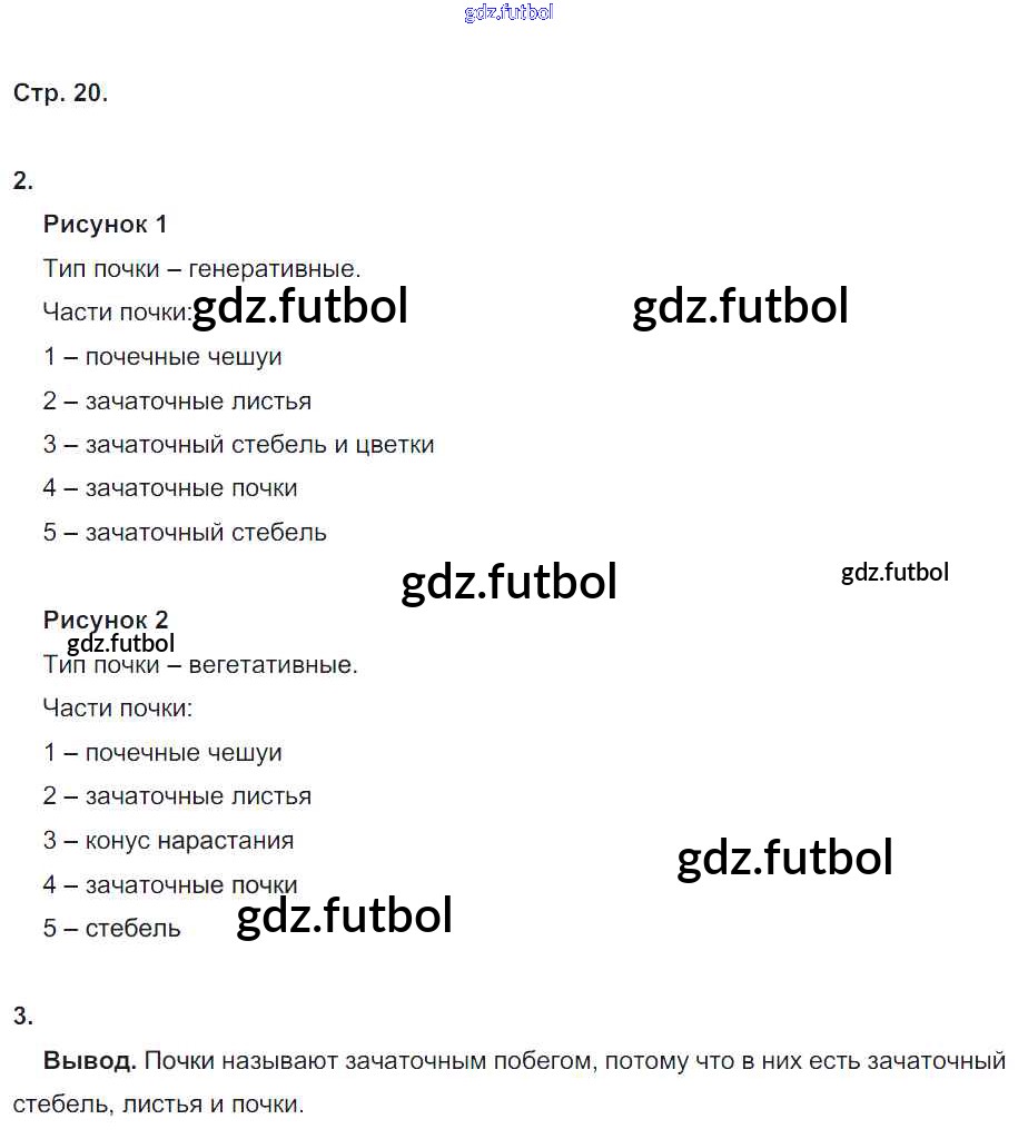 Готовые домашние задания по Биологии за 6 класс Пономарева Рабочая тетрадь Алгоритм успеха 2020 ФГОС - Часть 1. Страницы 20