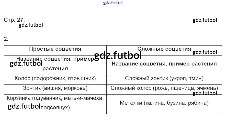 Готовые домашние задания по Биологии за 6 класс Пономарева Рабочая тетрадь Алгоритм успеха 2020 ФГОС - Часть 1. Страницы 27