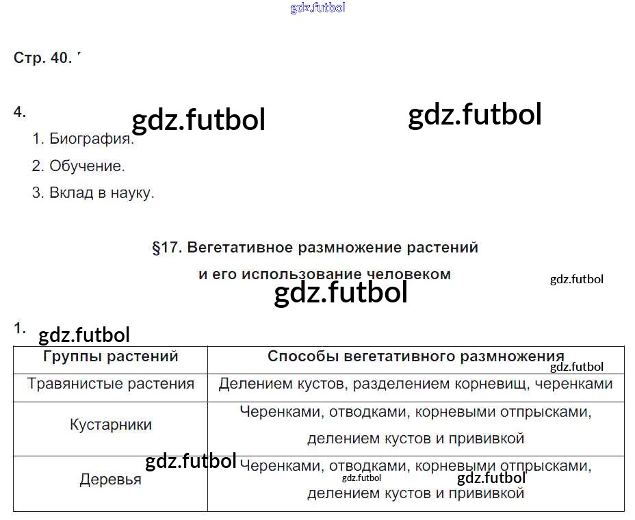 Готовые домашние задания по Биологии за 6 класс Пономарева Рабочая тетрадь Алгоритм успеха 2020 ФГОС - Часть 1. Страницы 40