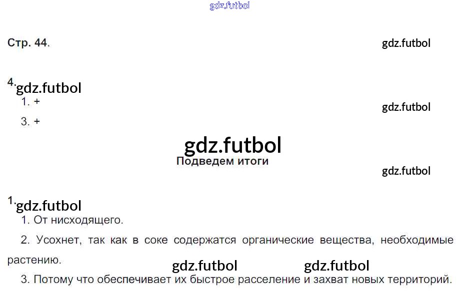 Готовые домашние задания по Биологии за 6 класс Пономарева Рабочая тетрадь Алгоритм успеха 2020 ФГОС - Часть 1. Страницы 44