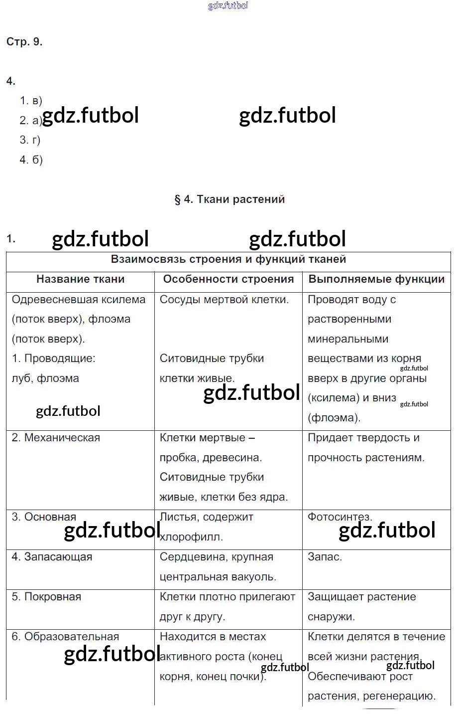 Готовые домашние задания по Биологии за 6 класс Пономарева Рабочая тетрадь Алгоритм успеха 2020 ФГОС - Часть 1. Страницы 9