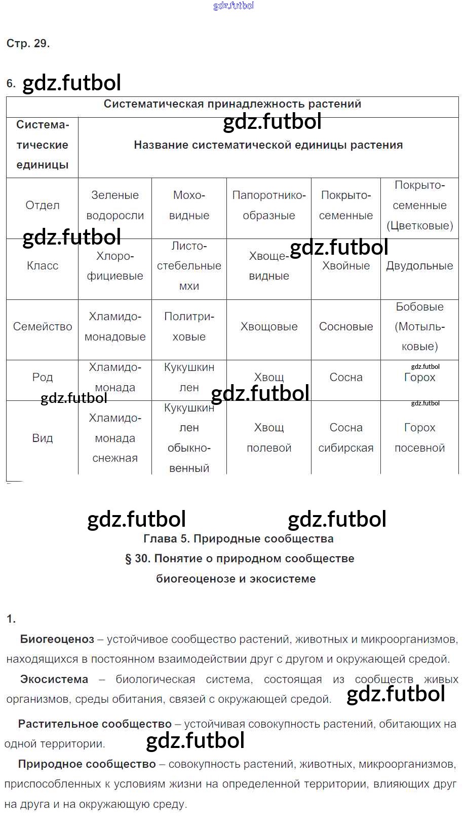 Готовые домашние задания по Биологии за 6 класс Пономарева Рабочая тетрадь Алгоритм успеха 2020 ФГОС - Часть 2. Страницы 29