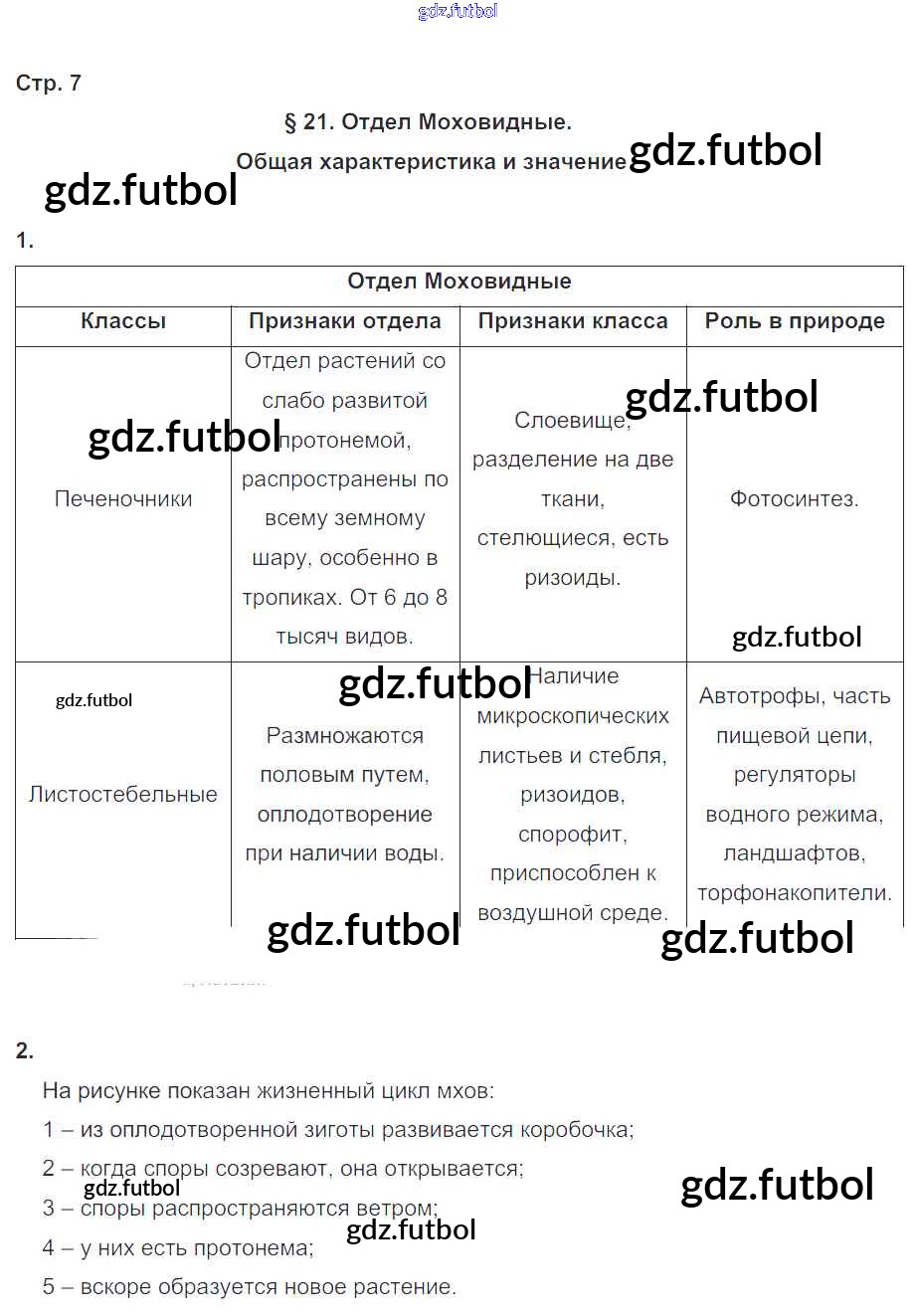 Готовые домашние задания по Биологии за 6 класс Пономарева Рабочая тетрадь Алгоритм успеха 2020 ФГОС - Часть 2. Страницы 7