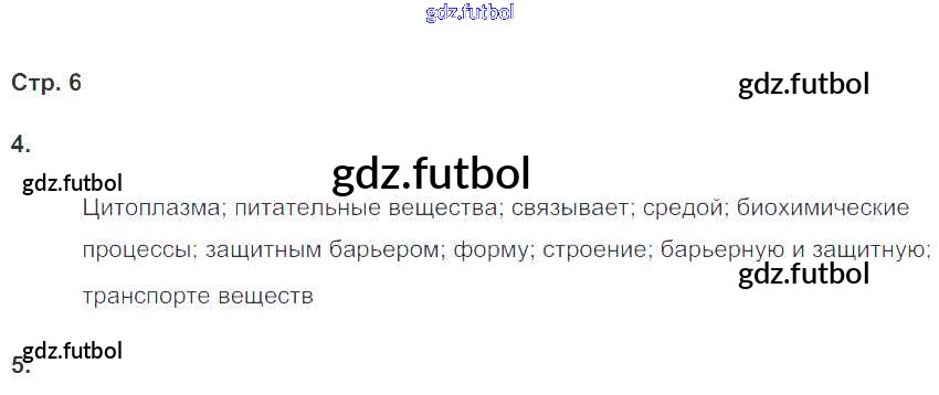 Готовые решения задач (ГДЗ) по Биологии шестой класс Сонин Рабочая тетрадь Живой организм 2020 ФГОС - Страницы 6 доступны для различных учебных материалов. У нас вы сможете найти авторские решения для всех пособий, предназначенных для школьников. Не секрет, что в настоящее время многие школьники прибегают к использованию готовых решебников, ведь они содержат подробные ответы для каждого упражнения, представленного в учебнике.