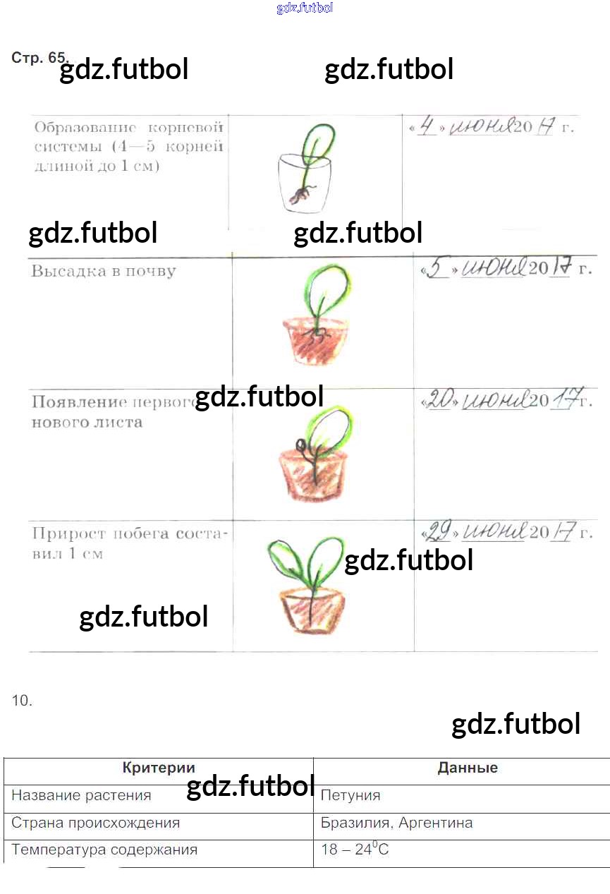 Готовые решения задач (ГДЗ) по Биологии шестой класс Сонин Рабочая тетрадь Живой организм 2020 ФГОС - Страницы 65 доступны для различных учебных материалов. У нас вы сможете найти авторские решения для всех пособий, предназначенных для школьников. Не секрет, что в настоящее время многие школьники прибегают к использованию готовых решебников, ведь они содержат подробные ответы для каждого упражнения, представленного в учебнике.