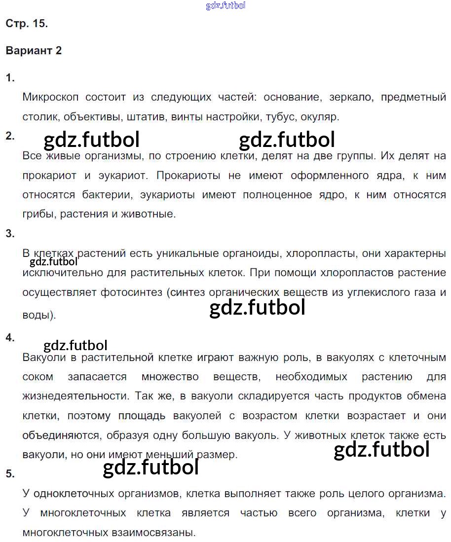 Готовые домашние задания по Биологии за 6 класс Сухорукова Тетрадь-экзаменатор Сферы 2017 ФГОС - Страницы 15
