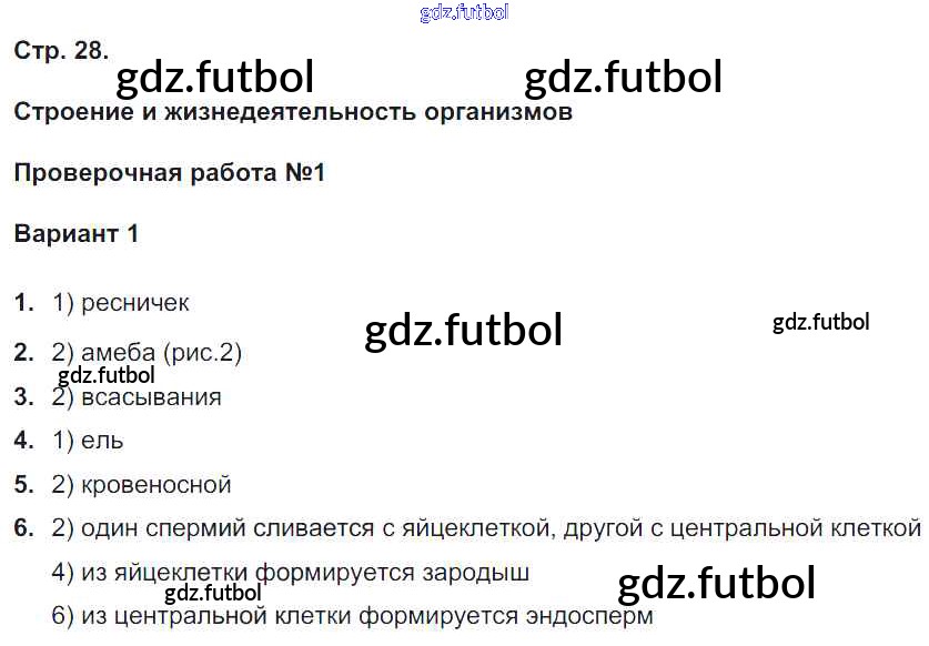 Готовые домашние задания по Биологии за 6 класс Сухорукова Тетрадь-экзаменатор Сферы 2017 ФГОС - Страницы 28