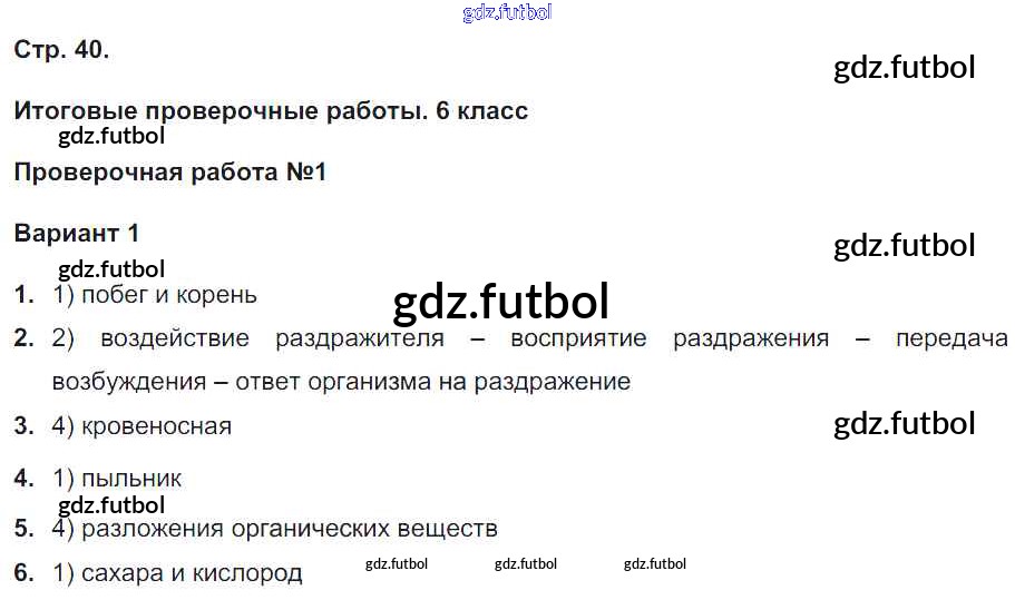 Готовые домашние задания по Биологии за 6 класс Сухорукова Тетрадь-экзаменатор Сферы 2017 ФГОС - Страницы 40