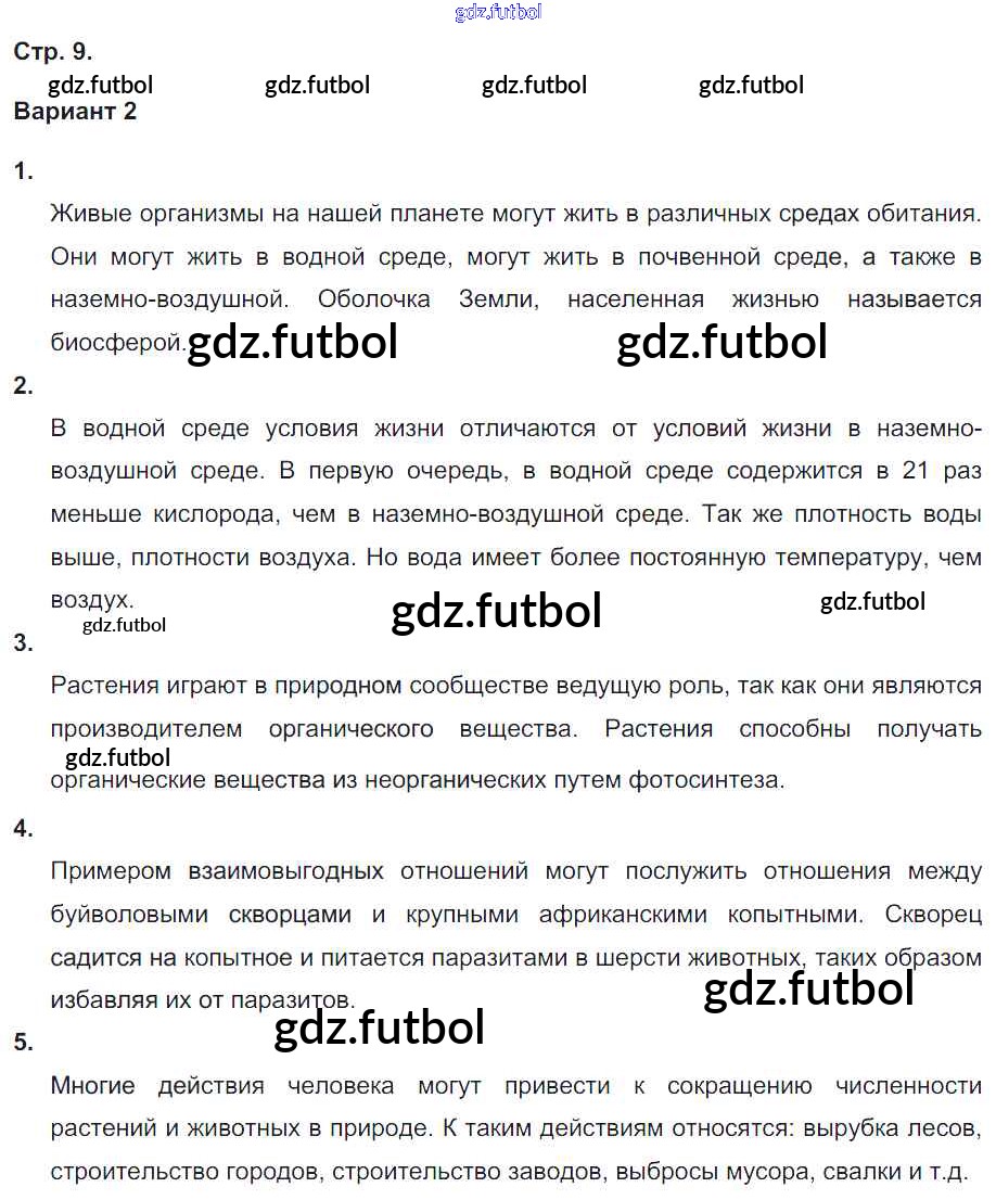 Готовые домашние задания по Биологии за 6 класс Сухорукова Тетрадь-экзаменатор Сферы 2017 ФГОС - Страницы 9