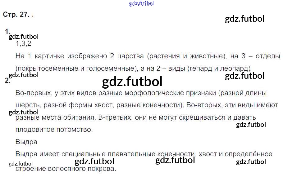 Готовые домашние задания по Биологии за 6 класс Сухорукова Тетрадь-тренажер Сферы 2016 ФГОС - Часть 1. Страницы 27