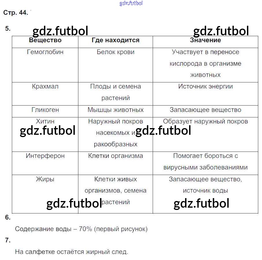 Готовые домашние задания по Биологии за 6 класс Сухорукова Тетрадь-тренажер Сферы 2016 ФГОС - Часть 1. Страницы 44