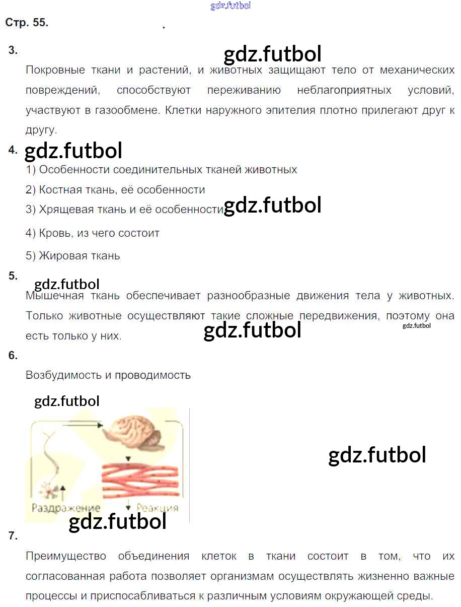 Готовые домашние задания по Биологии за 6 класс Сухорукова Тетрадь-тренажер Сферы 2016 ФГОС - Часть 1. Страницы 55