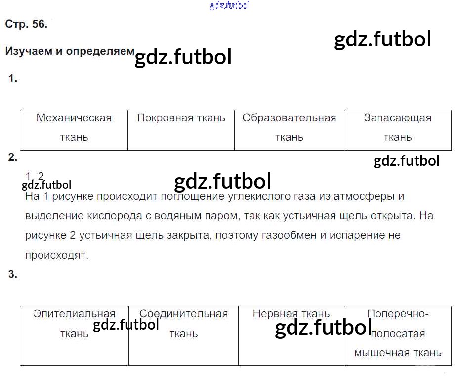 Готовые домашние задания по Биологии за 6 класс Сухорукова Тетрадь-тренажер Сферы 2016 ФГОС - Часть 1. Страницы 56
