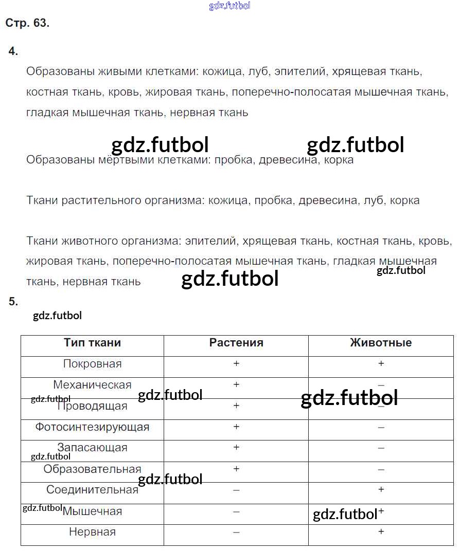 Готовые домашние задания по Биологии за 6 класс Сухорукова Тетрадь-тренажер Сферы 2016 ФГОС - Часть 1. Страницы 63