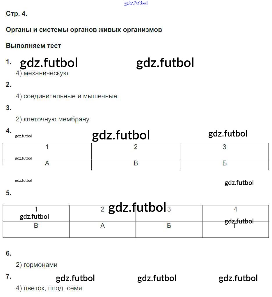 Готовые домашние задания по Биологии за 6 класс Сухорукова Тетрадь-тренажер Сферы 2016 ФГОС - Часть 2. Страницы 4