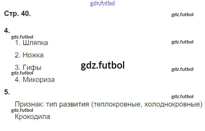 Готовые домашние задания по Биологии за 6 класс Сухорукова Тетрадь-тренажер Сферы 2016 ФГОС - Часть 2. Страницы 40
