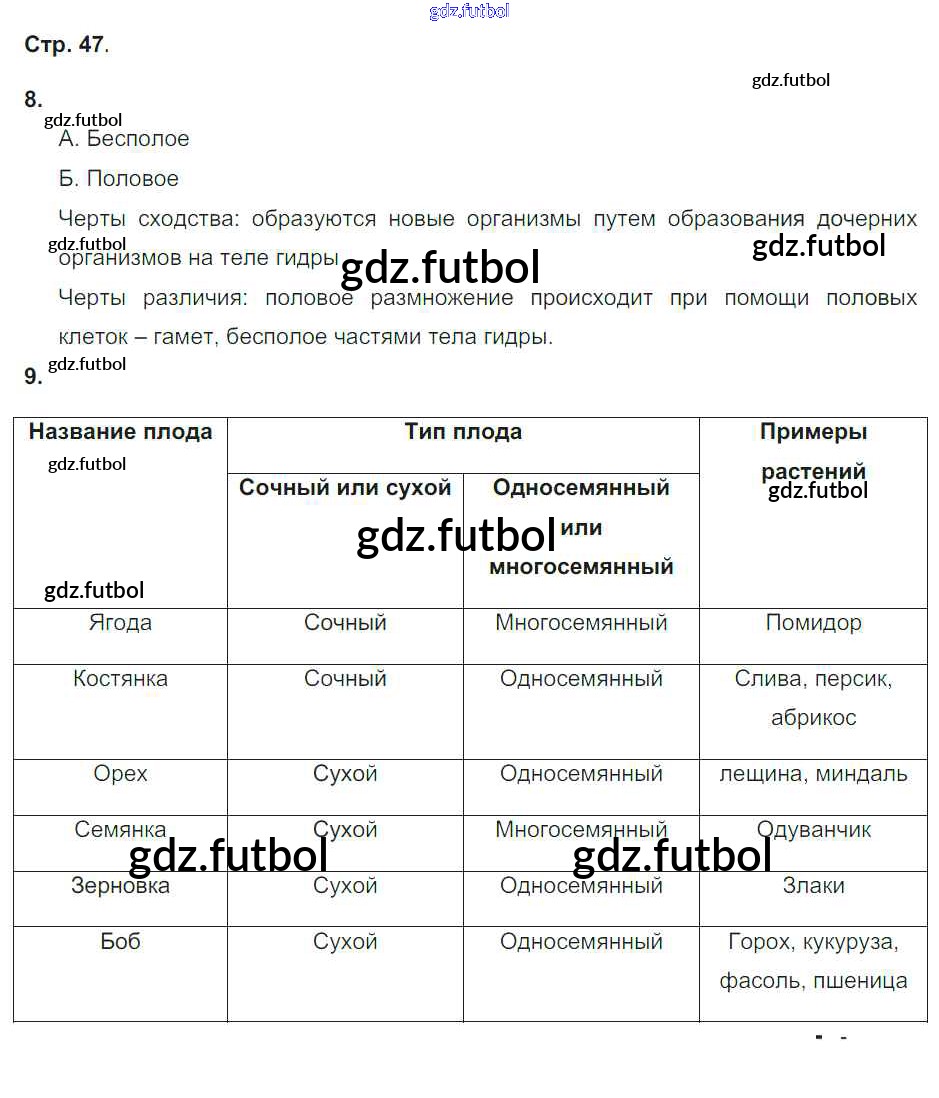 Готовые домашние задания по Биологии за 6 класс Сухорукова Тетрадь-тренажер Сферы 2016 ФГОС - Часть 2. Страницы 47