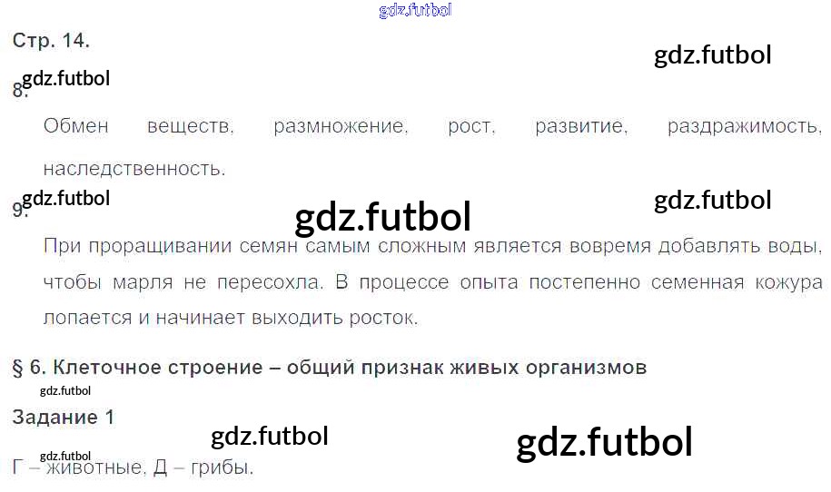 Готовые домашние задания по Биологии за 6 класс Сухова Рабочая тетрадь Алгоритм успеха 2015 ФГОС - Часть 1. Страницы 14