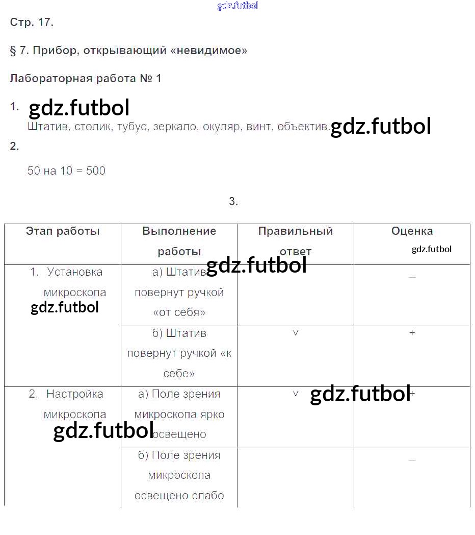Готовые домашние задания по Биологии за 6 класс Сухова Рабочая тетрадь Алгоритм успеха 2015 ФГОС - Часть 1. Страницы 17