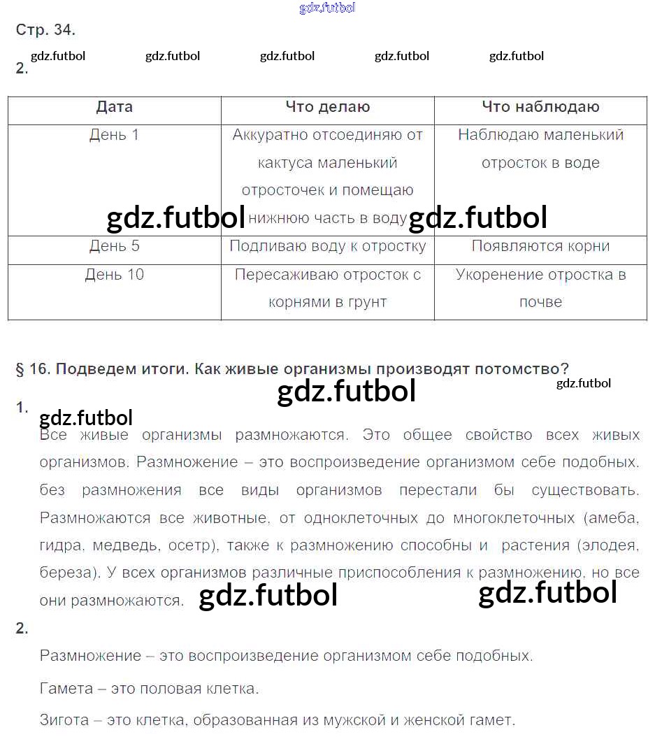 Готовые домашние задания по Биологии за 6 класс Сухова Рабочая тетрадь Алгоритм успеха 2015 ФГОС - Часть 1. Страницы 34