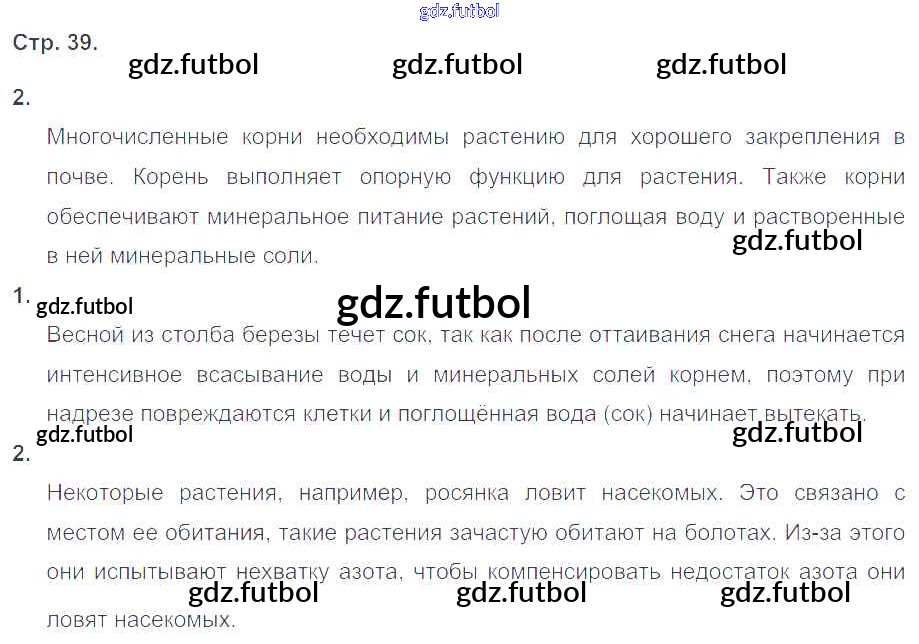 Готовые домашние задания по Биологии за 6 класс Сухова Рабочая тетрадь Алгоритм успеха 2015 ФГОС - Часть 1. Страницы 39
