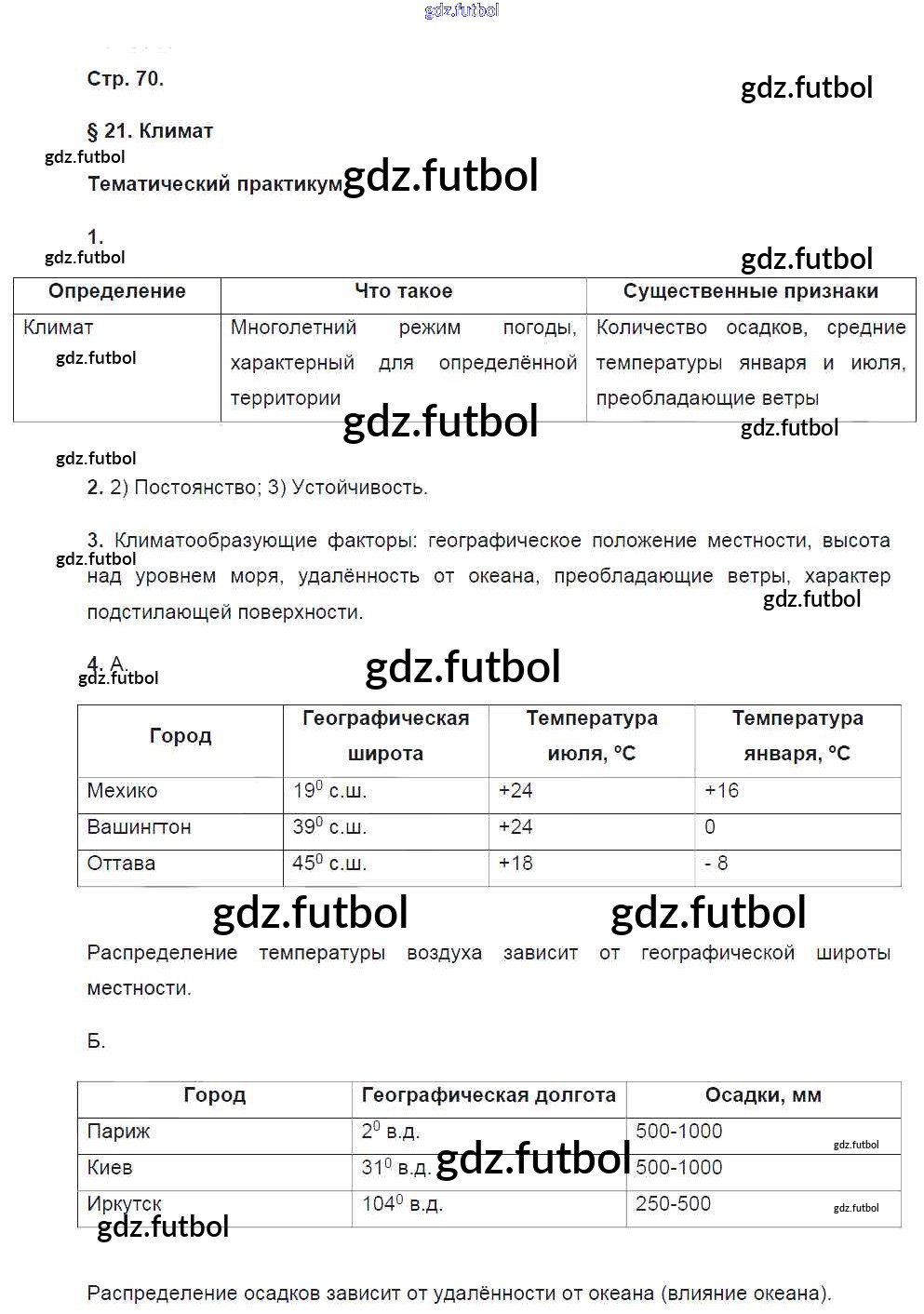 Готовые домашние задания по Географии за 6 класс Болотникова Тетрадь-практикум Инновационная школа 2017 ФГОС - Страницы 70