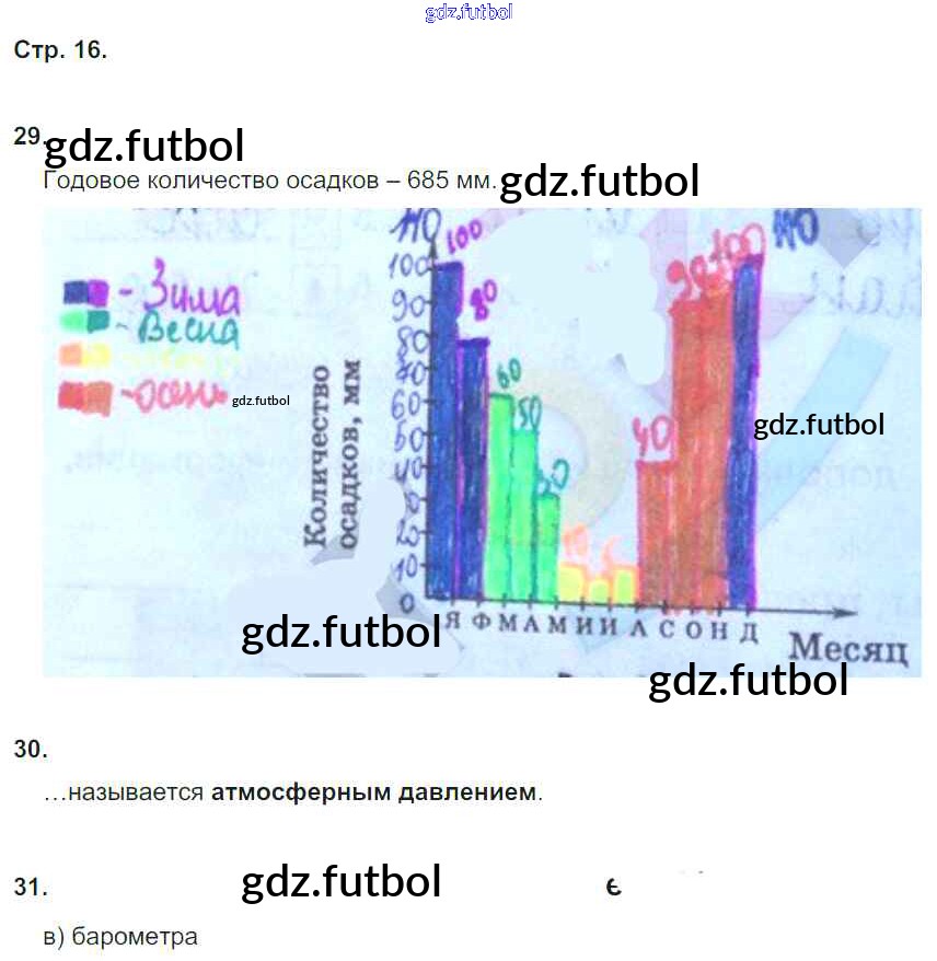 Готовые домашние задания по Географии за 6 класс Дронов Рабочая тетрадь Вертикаль 2016 ФГОС - Атмосфера (страницы тетради) 16