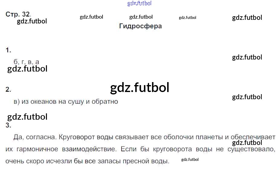 Готовые домашние задания по Географии за 6 класс Дронов Рабочая тетрадь Вертикаль 2016 ФГОС - Гидросфера (страницы тетради) 32