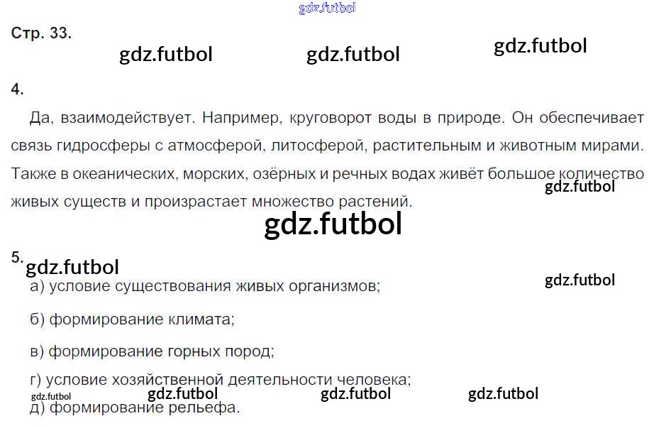 Готовые домашние задания по Географии за 6 класс Дронов Рабочая тетрадь Вертикаль 2016 ФГОС - Гидросфера (страницы тетради) 33