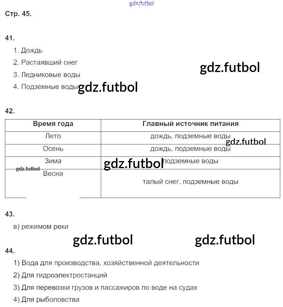 Готовые домашние задания по Географии за 6 класс Дронов Рабочая тетрадь Вертикаль 2016 ФГОС - Гидросфера (страницы тетради) 45