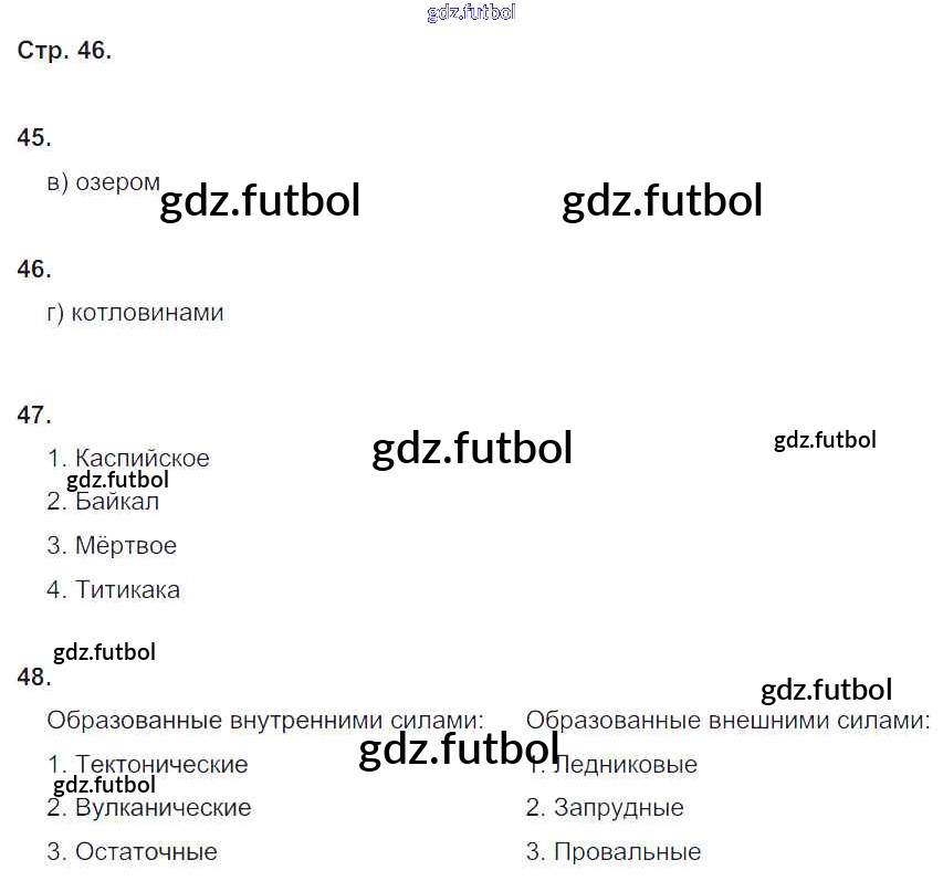Готовые домашние задания по Географии за 6 класс Дронов Рабочая тетрадь Вертикаль 2016 ФГОС - Гидросфера (страницы тетради) 46