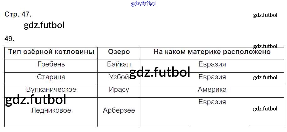 Готовые домашние задания по Географии за 6 класс Дронов Рабочая тетрадь Вертикаль 2016 ФГОС - Гидросфера (страницы тетради) 47