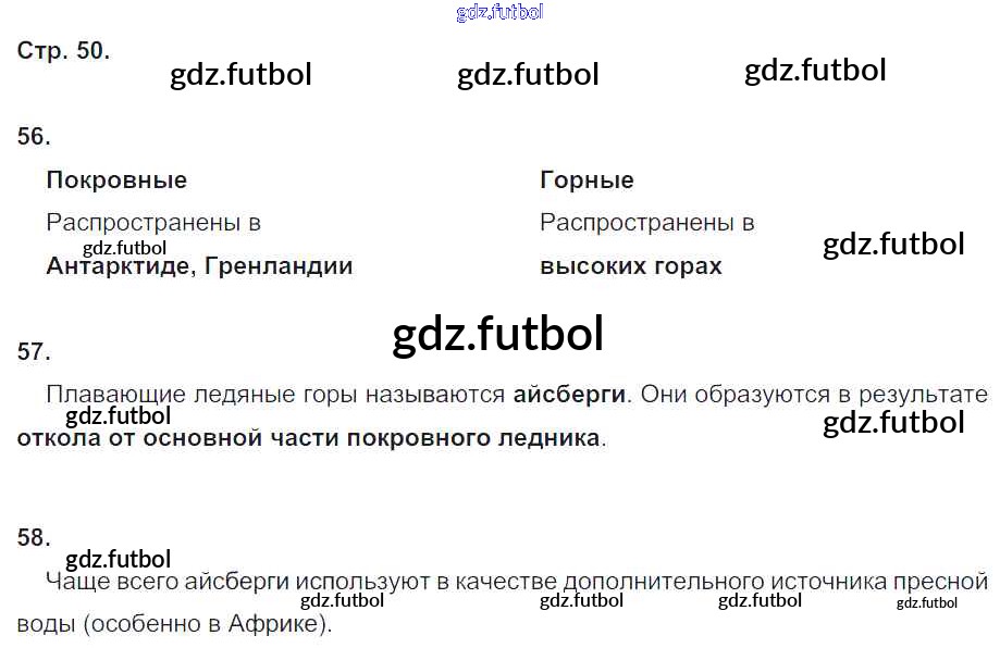 Готовые домашние задания по Географии за 6 класс Дронов Рабочая тетрадь Вертикаль 2016 ФГОС - Гидросфера (страницы тетради) 50