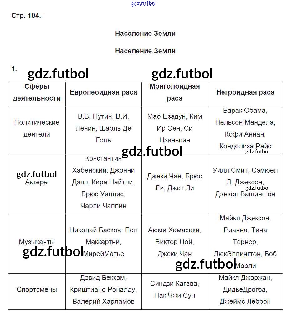 Готовые домашние задания по Географии за 6 класс Карташева Рабочая тетрадь Вертикаль 2020 ФГОС - Страницы 104
