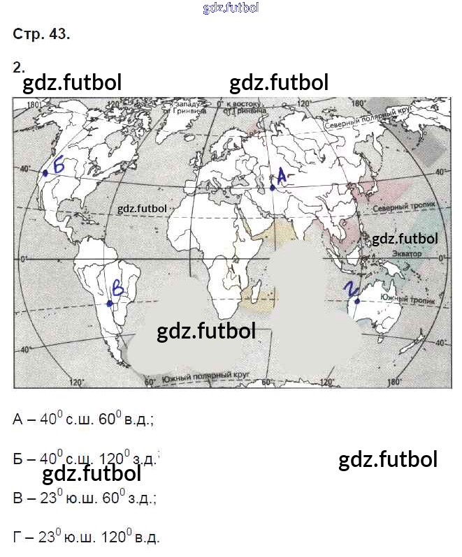Готовые домашние задания по Географии за 6 класс Карташева Рабочая тетрадь Вертикаль 2020 ФГОС - Страницы 43