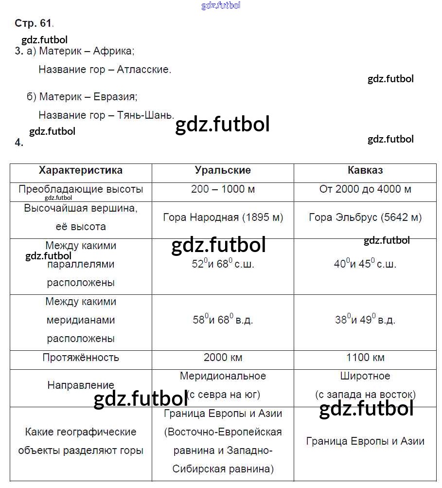 Готовые домашние задания по Географии за 6 класс Карташева Рабочая тетрадь Вертикаль 2020 ФГОС - Страницы 61