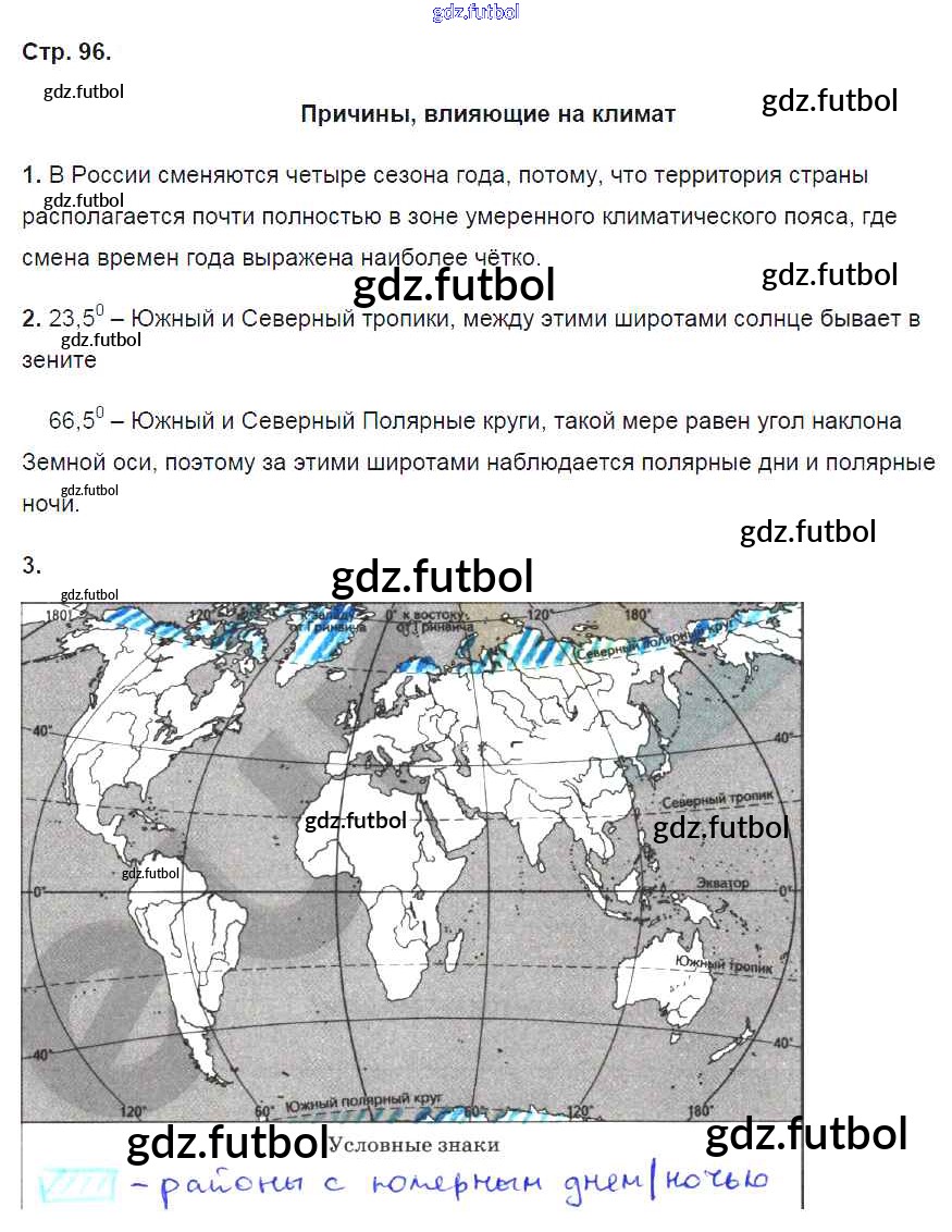 Готовые домашние задания по Географии за 6 класс Карташева Рабочая тетрадь Вертикаль 2020 ФГОС - Страницы 96