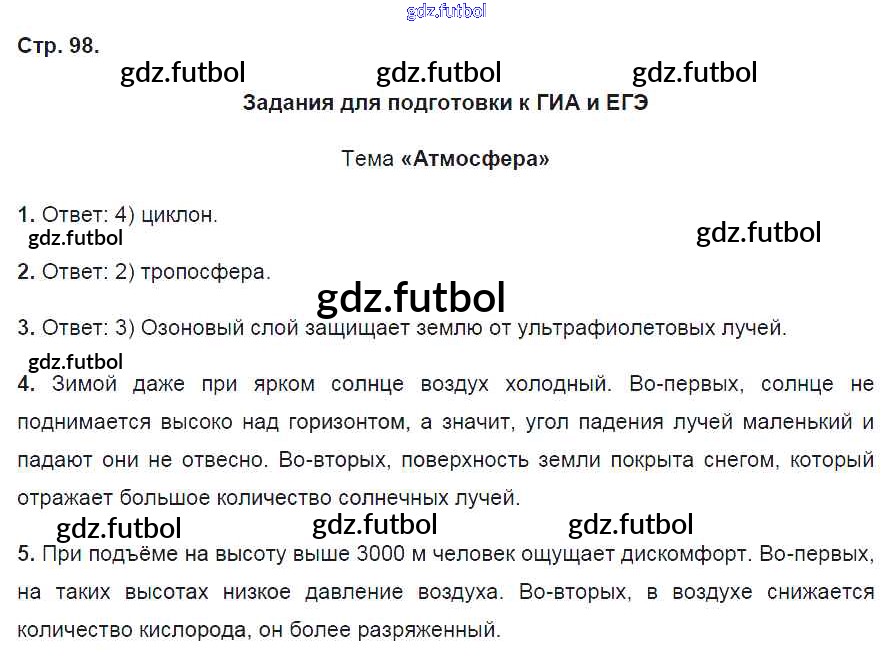 Готовые домашние задания по Географии за 6 класс Карташева Рабочая тетрадь Вертикаль 2020 ФГОС - Страницы 98