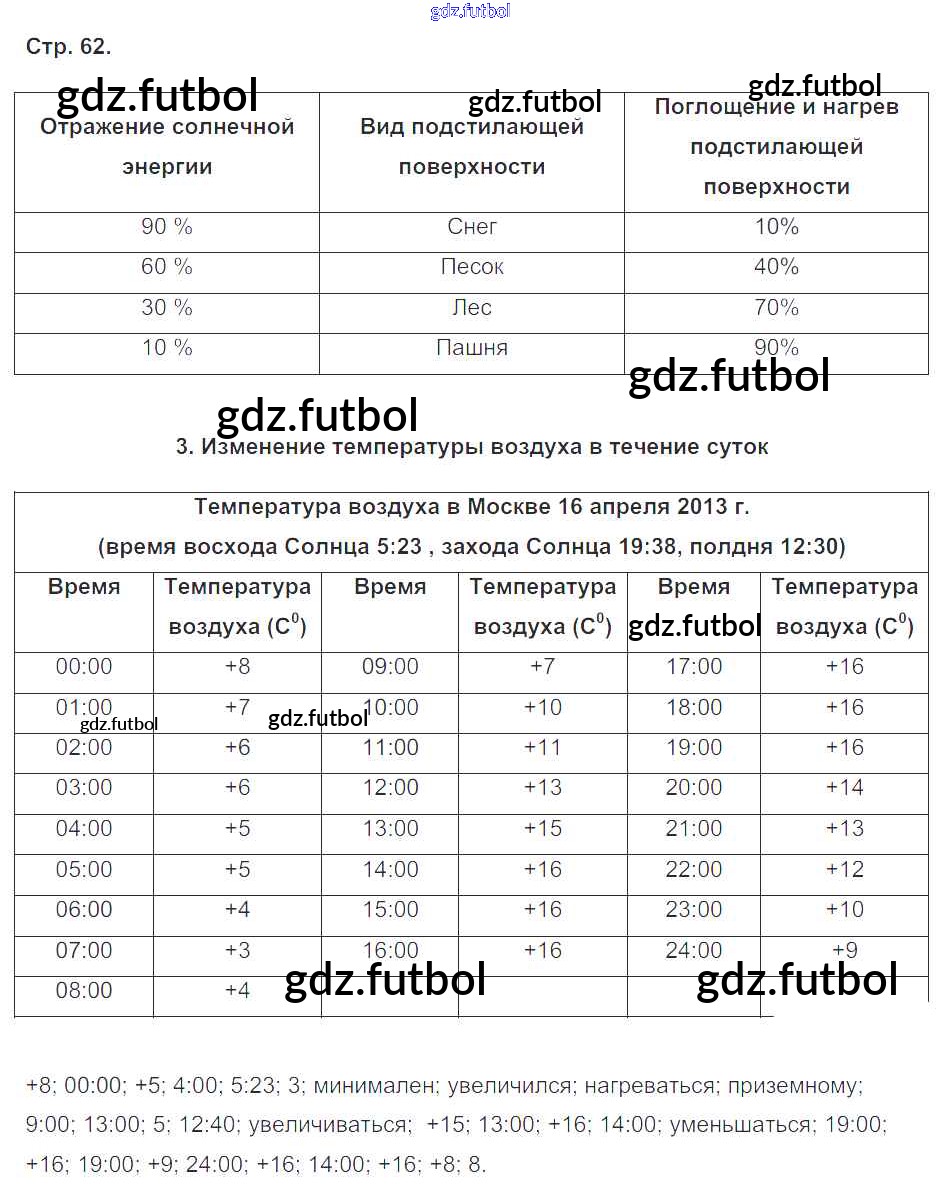 Готовые домашние задания по Географии за 6 класс Летягин Дневник географа-следопыта Алгоритм успеха 2020 ФГОС - Страницы 62