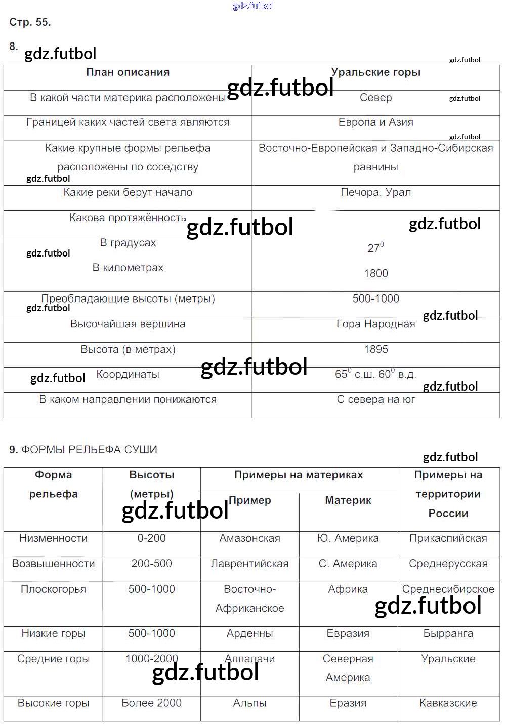 Готовые домашние задания по Географии за 6 класс Лобжанидзе Тетрадь-тренажёр Сферы 2014 ФГОС - Часть 1. Страницы 55