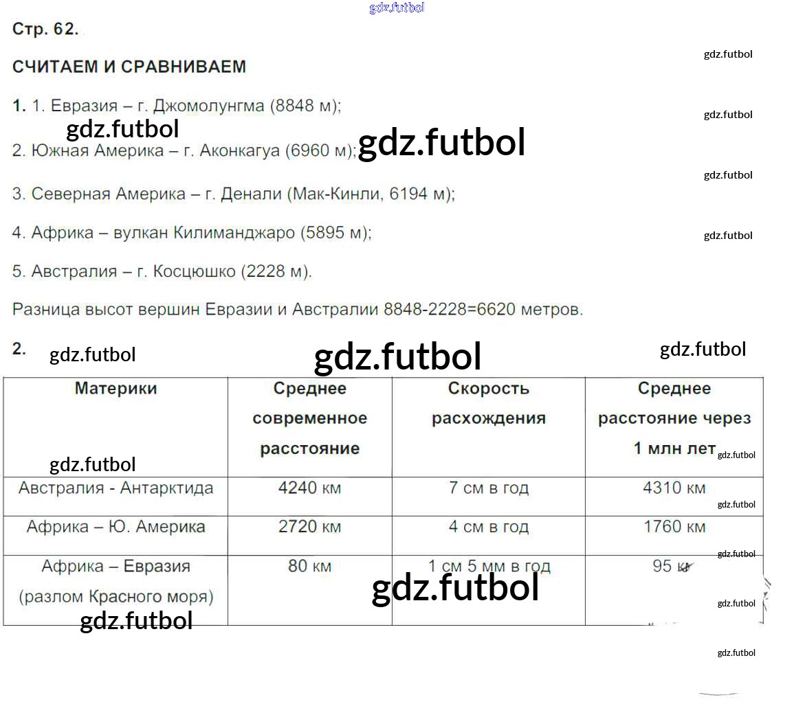Готовые домашние задания по Географии за 6 класс Лобжанидзе Тетрадь-тренажёр Сферы 2014 ФГОС - Часть 1. Страницы 62