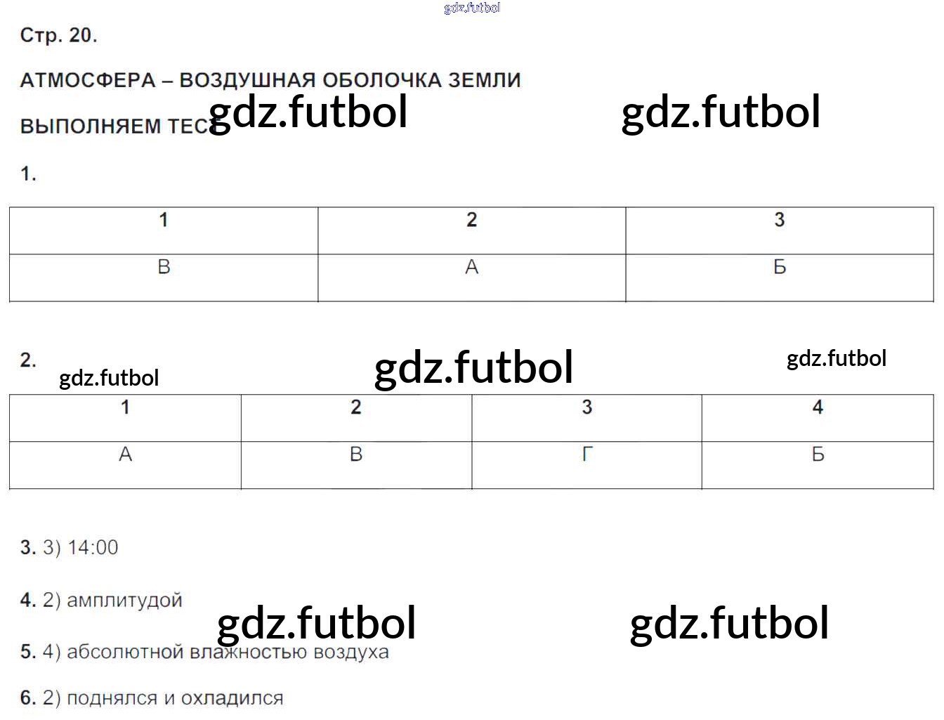 Готовые домашние задания по Географии за 6 класс Лобжанидзе Тетрадь-тренажёр Сферы 2014 ФГОС - Часть 2. Страницы 20