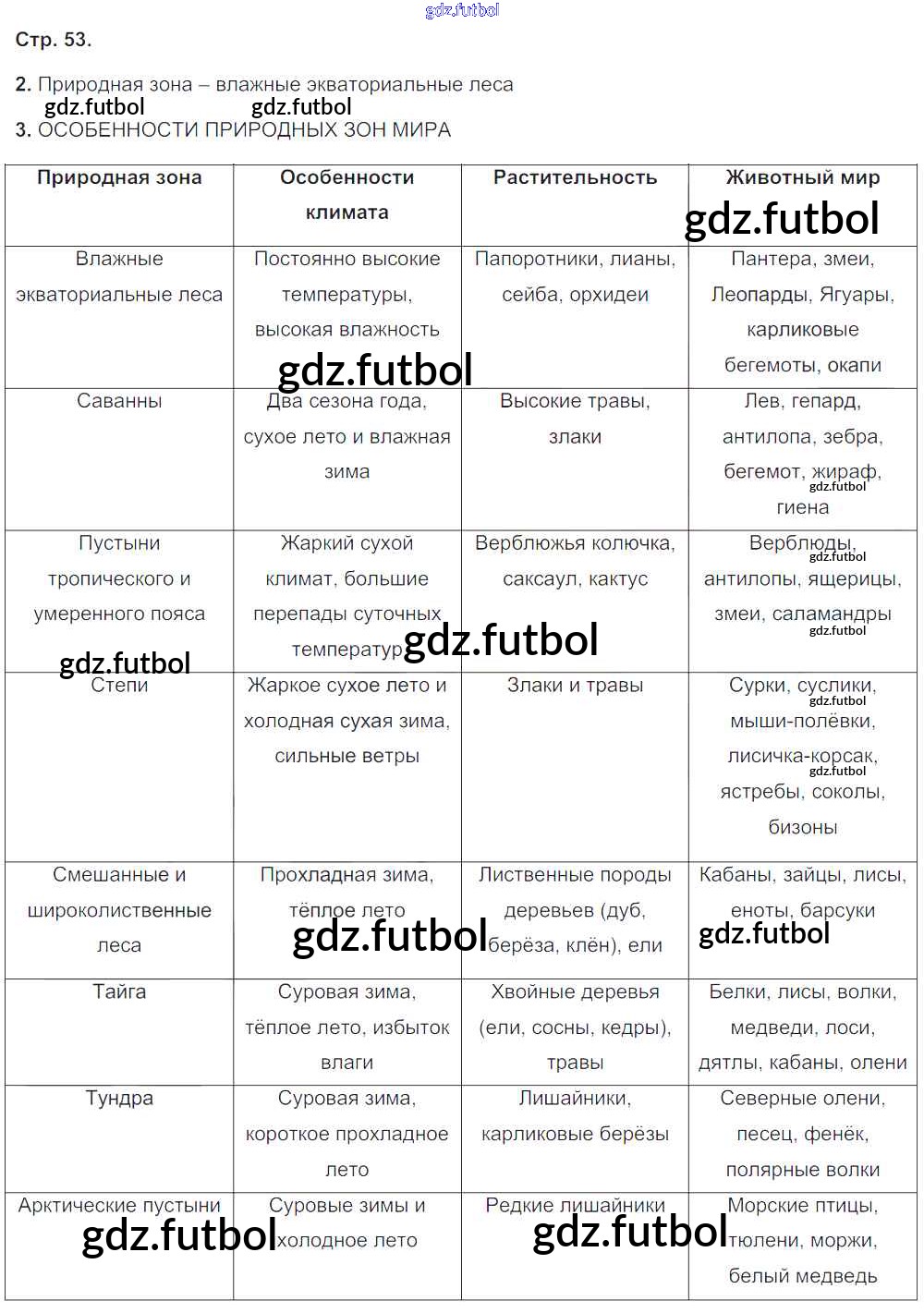 Готовые домашние задания по Географии за 6 класс Лобжанидзе Тетрадь-тренажёр Сферы 2014 ФГОС - Часть 2. Страницы 53