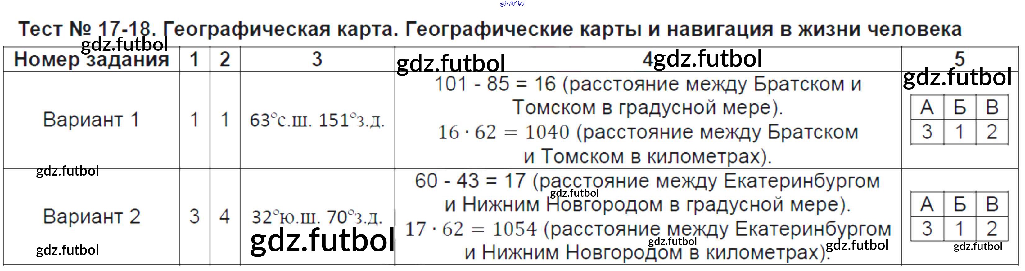 Готовые домашние задания по Географии за 6 класс Пятунина Тесты УМК 2017 ФГОС - Тесты Тест-17-18. Географическая карта. Географические карты и навигация в жизни человека