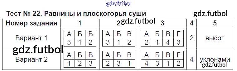 Готовые домашние задания по Географии за 6 класс Пятунина Тесты УМК 2017 ФГОС - Тесты Тест-22. Равнины и плоскогорья суши